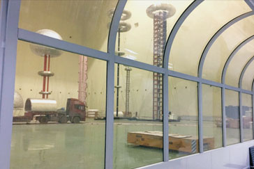 高壓局放試驗(yàn)大廳控制室可采用我單位設(shè)計(jì)的曲面觀察窗,樣式美觀,觀察范圍無任何死角